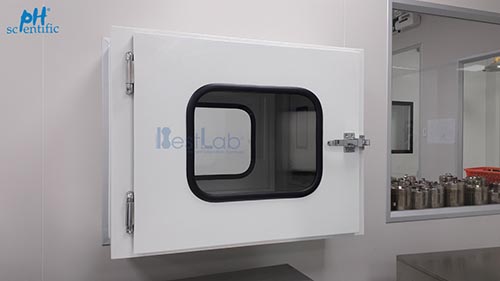 Cửa Pass box được khóa bằng hệ thống khóa Inter Lock, mở bên này thì không mở được bên kia và ngược lại.