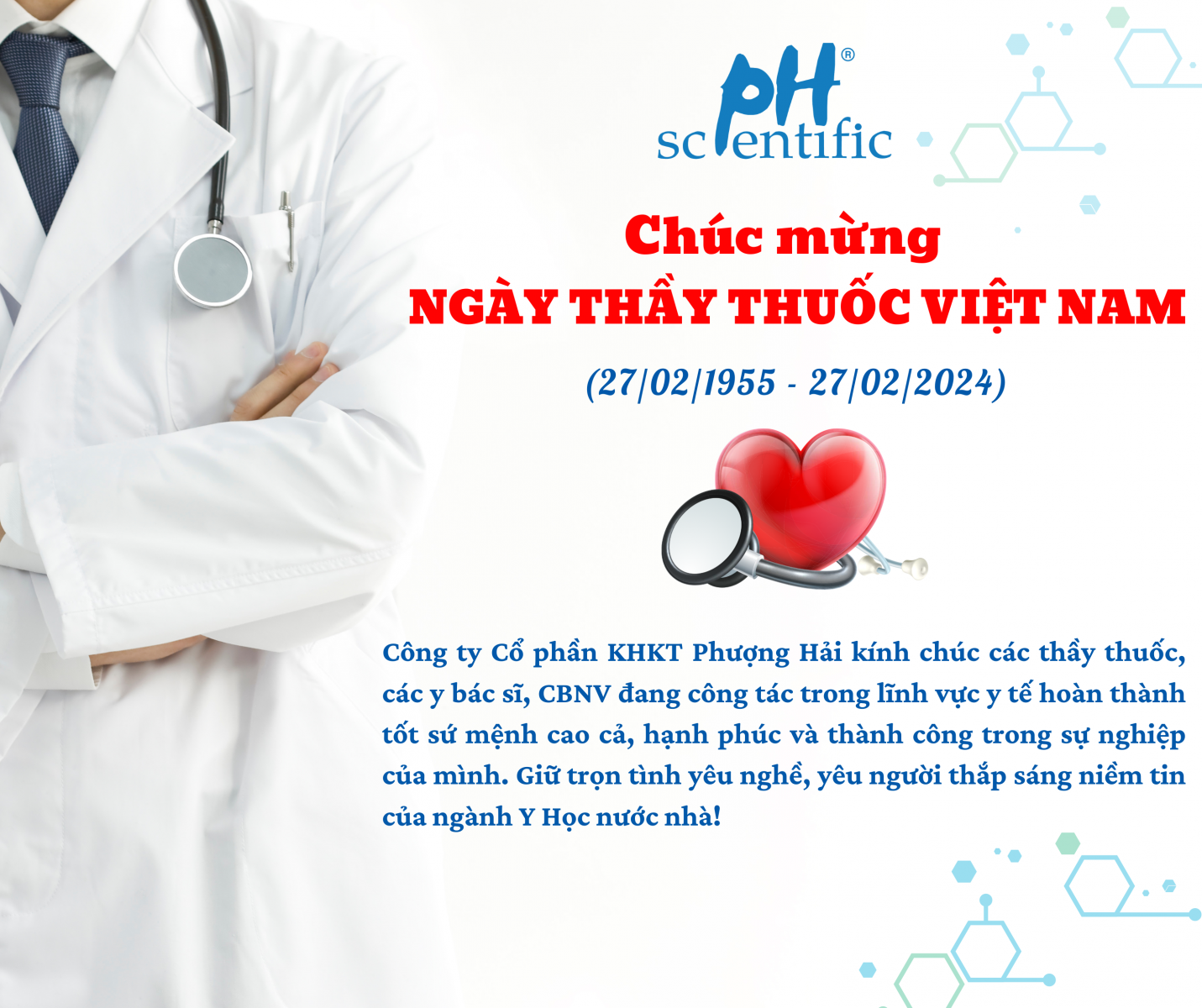 Công ty Cổ phần KHKT Phượng Hải mến chúc những người Thầy Thuốc Việt Nam hoàn thành tốt sứ mệnh cao cả, hạnh phúc và thành công trong sự nghiệp của mình.